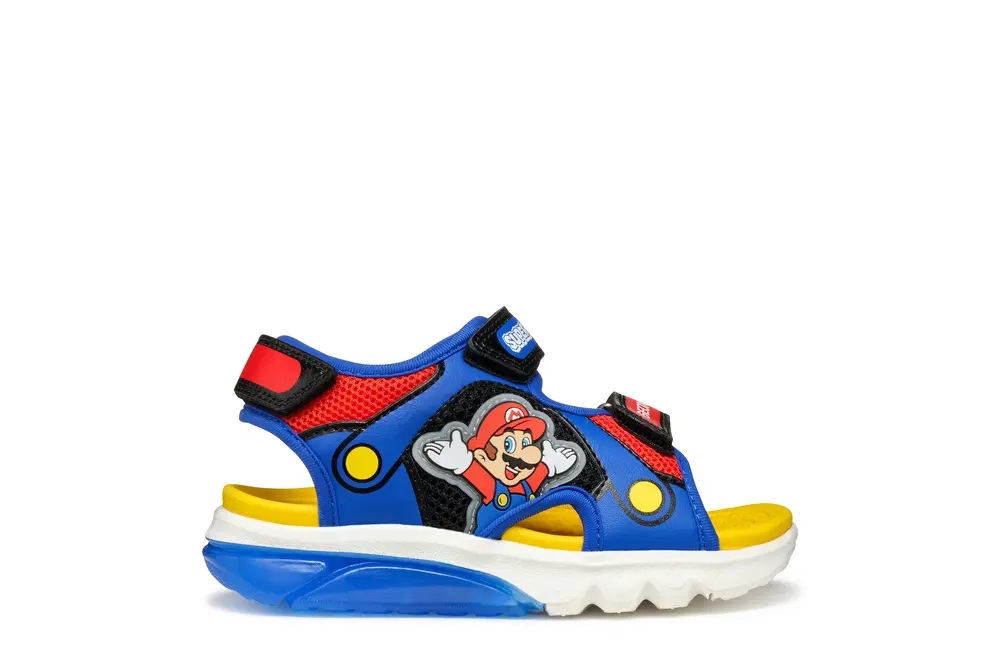 Vi har fundet Sandal Ciberdron C0833 29 hos Babysam.dk i kategorien Sandaler Med åben Tå. Ciberdron er en sandal til drenge lavet af mesh og et læderlignende materiale med lys indbygget i ydersålen. Denne sandal er støddæmpende, sporty og nem at justere. Som et produkt af samarbejdet mellem Geox og Nintendo har den en livlig overdel med grafis